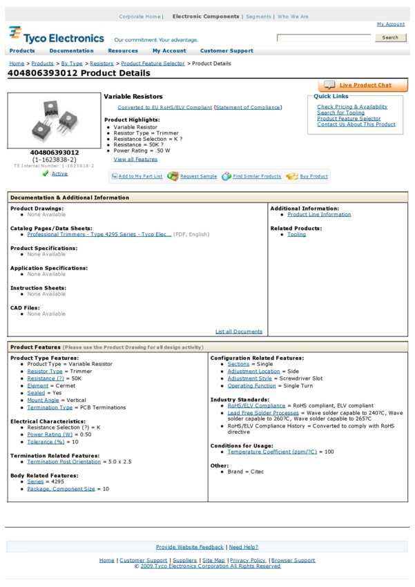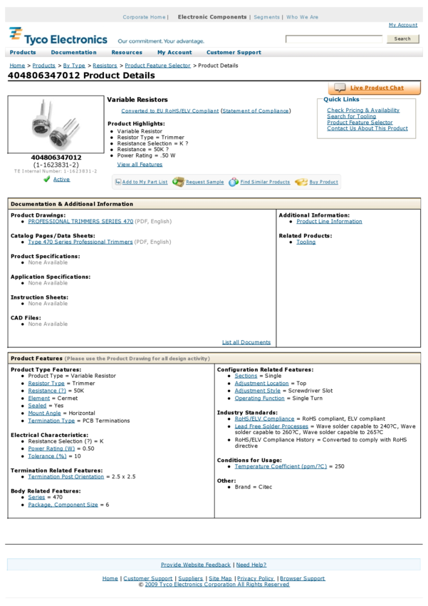 Res Cermet Trimmer 50K Ohm 10% 1/2W 1Turn Pin Thru-Hole