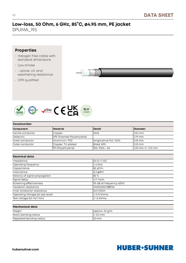 Przewód; antenowy; koncentryczny; RG59; SPUMA_195; 50Ohm; 4,95mm; czarny; Cu; PE; drut; folia + oplot; rolka 100m; RoHS