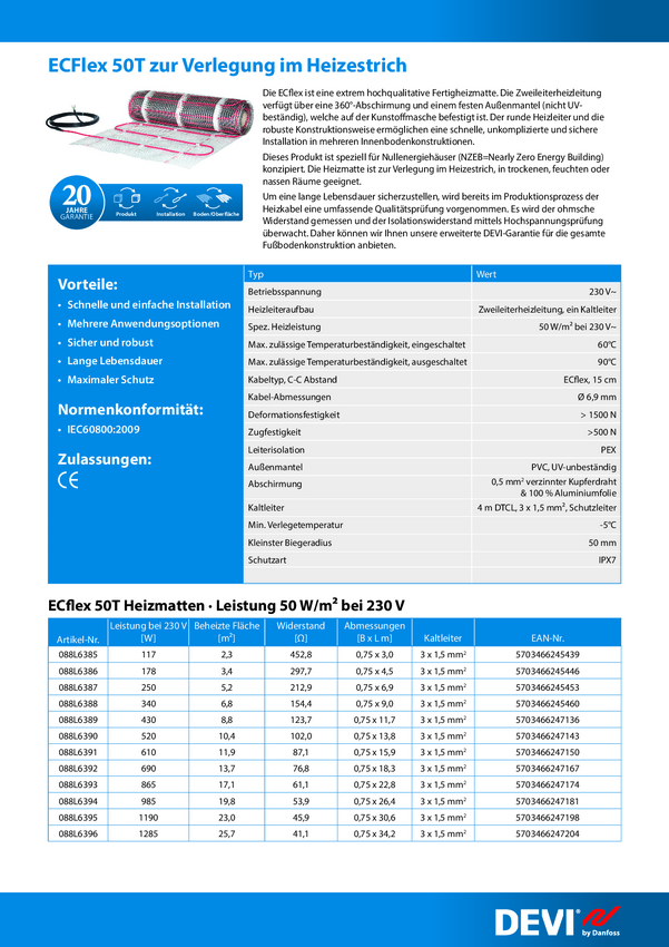 Mata grzewcza Danfoss ECFlex 50T#088L6387 088L6387, 1 szt.