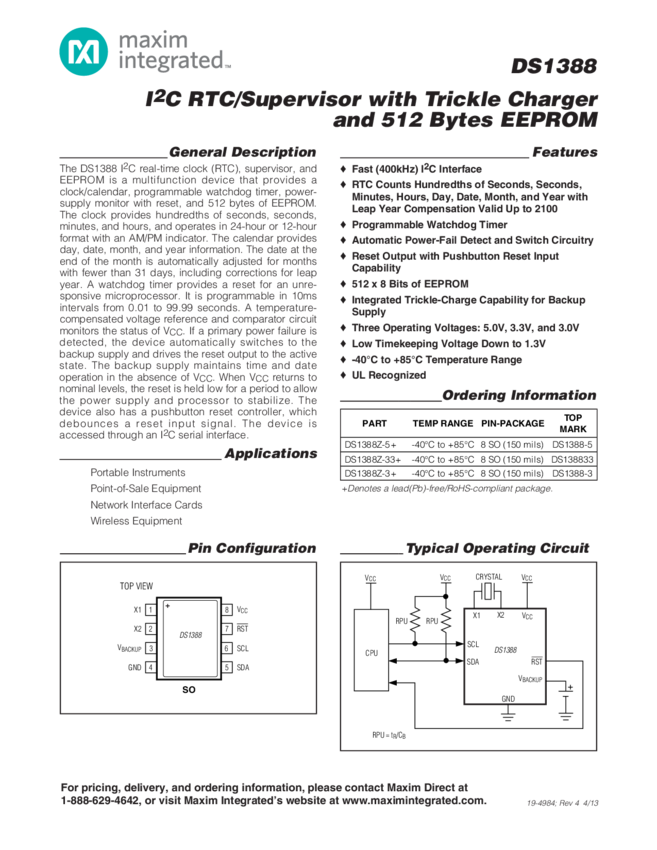 Real Time Clock Serial 512Byte 8-Pin SOIC N