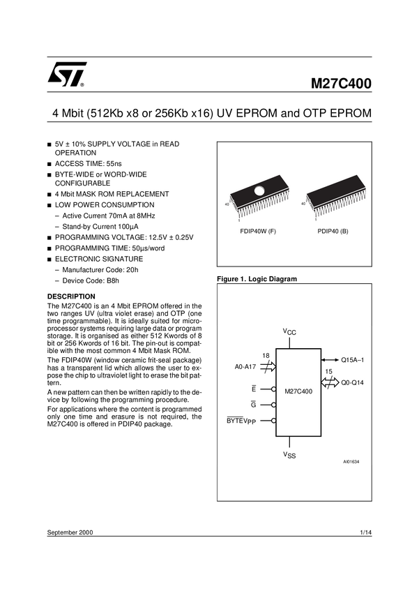 CMOS EPROM 1Mx8/512Kx16; 100ns; CDIP42