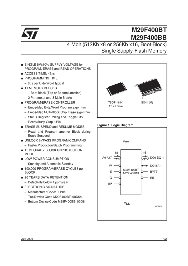 4MB(512KX8 OR 256KX16,BOOT BLOCK 5V TSOP48(12X20)-40+85 ST