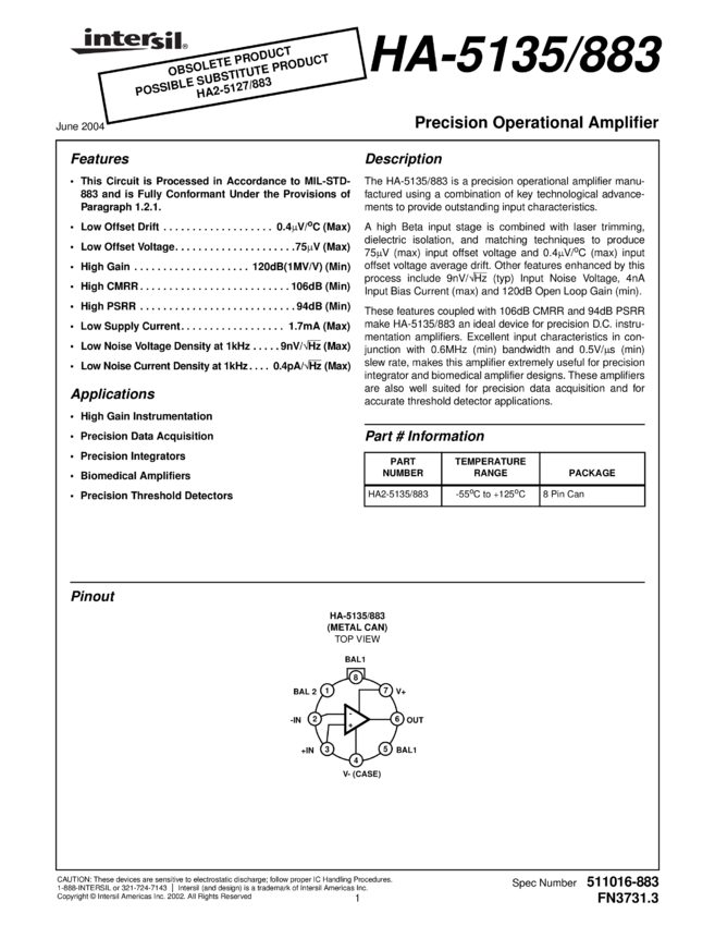 63MHz, Ultra-Low Noise Precision Operational Amplifier