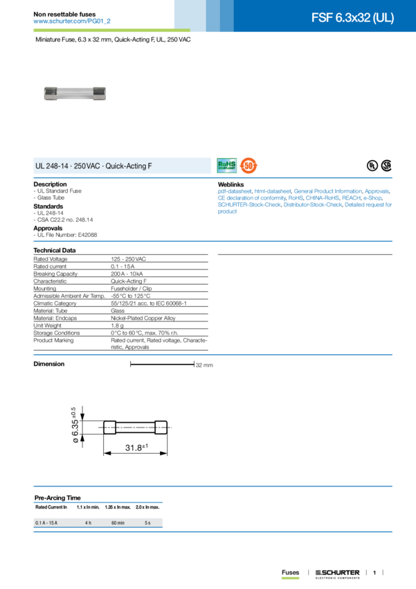 Fuse Miniature 8A 250V Fast 2-Pin Cartridge Holder Box