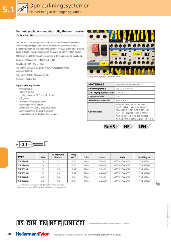Oznacznik rurek termokurczliwych HellermannTyton TLFX64YE-PO-X-YE 554-51301, 90 m