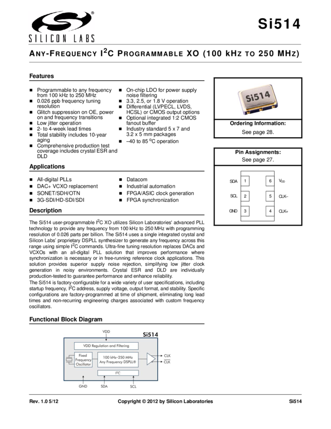 Programmable Crystal Oscillator 3.3V 15pF 6-Pin SMD Tray