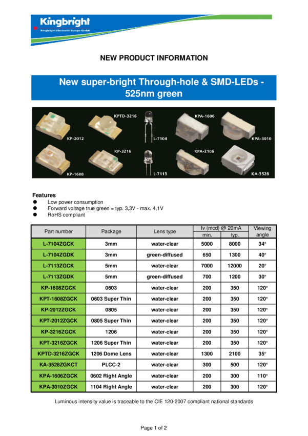 LED Uni-Color Green 515nm Chip LED 2-Pin SMD T/R
