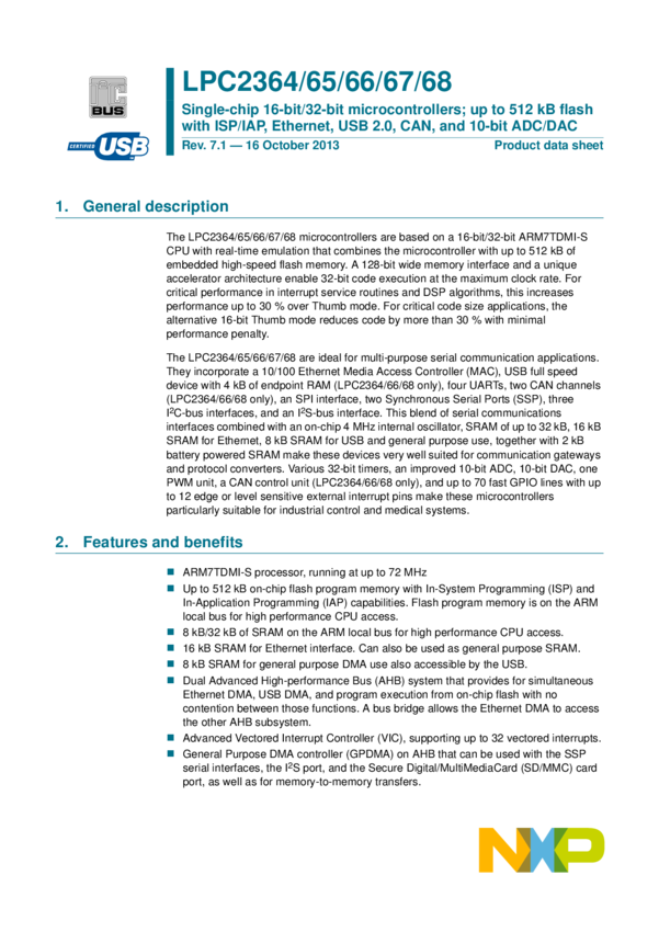 32-bit ARM Cortex-M3 microcontroller; up to 32 kB flash and 8 kB SRAM; USB device