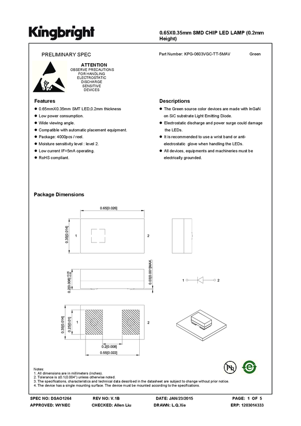 LED Uni-Color Green 518nm Chip LED 2-Pin SMD T/R