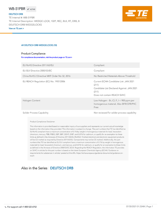 DRB TE ICT DRB WB-51PBR TE Connectivity Zawartość: 1 szt.