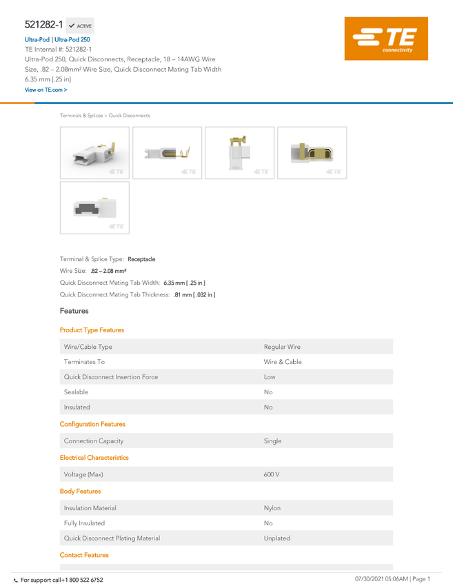 TE Connectivity 521282-1 1 szt.