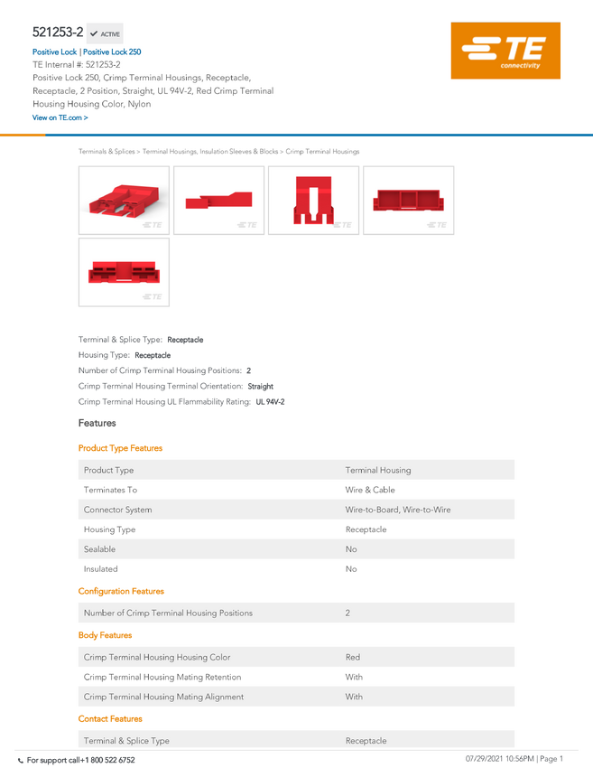 TE Connectivity 521253-2 TE AMP Positive Lock, 1 szt.
