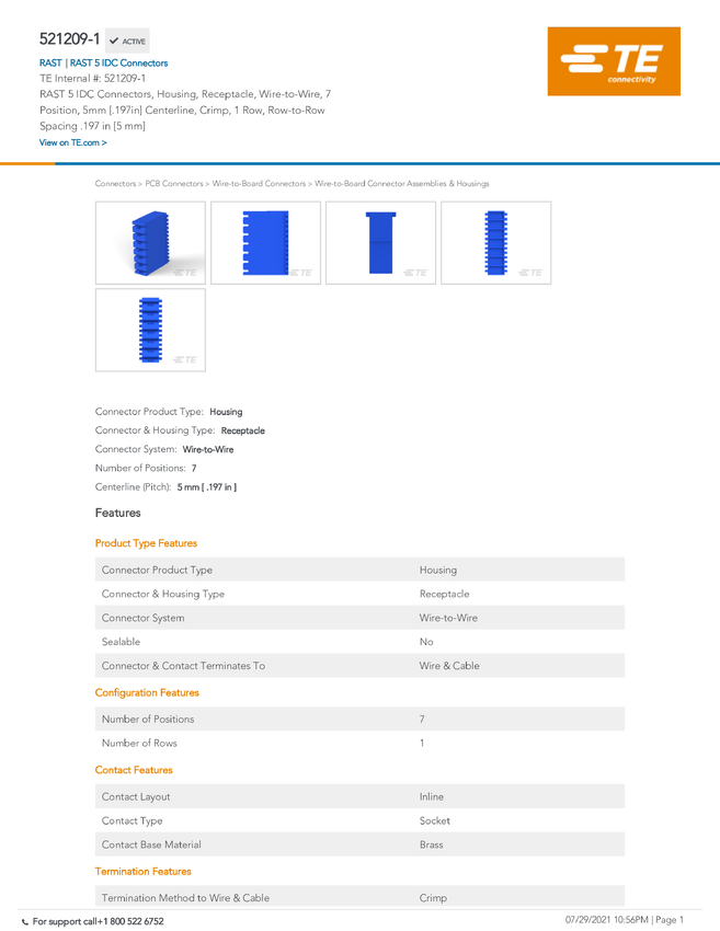 TE Connectivity 521205-7 TE AMP RAST 5 Connectors, 1 szt.