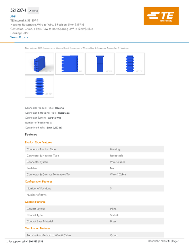 TE Connectivity 521207-1 TE AMP RAST 5 Connectors, 1 szt.