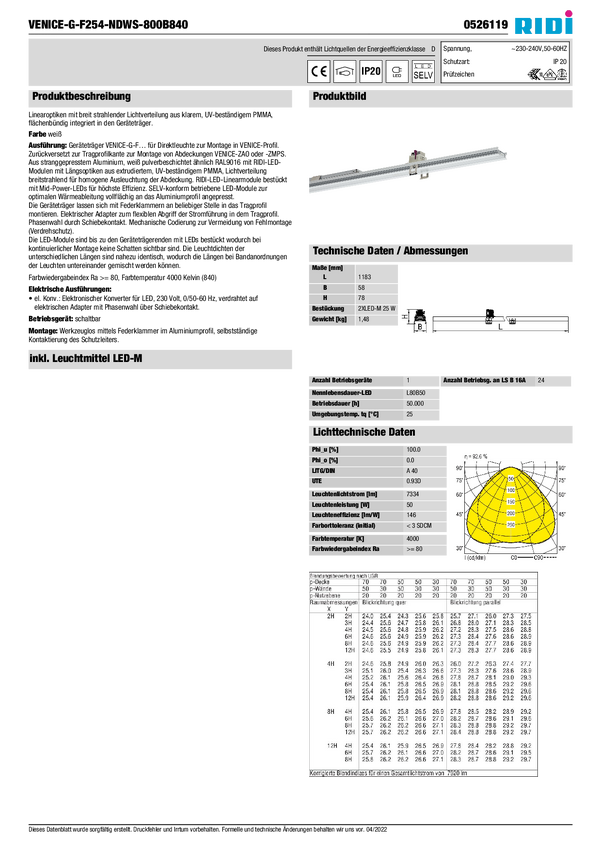 RIDI 526120 526120 Ciąg świetlny LED wbudowany na stałe 62 W LED biały 1 szt.