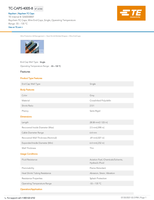TE Connectivity TE RAY Polyolefins ETC 5260010007, 1x -02050007019909