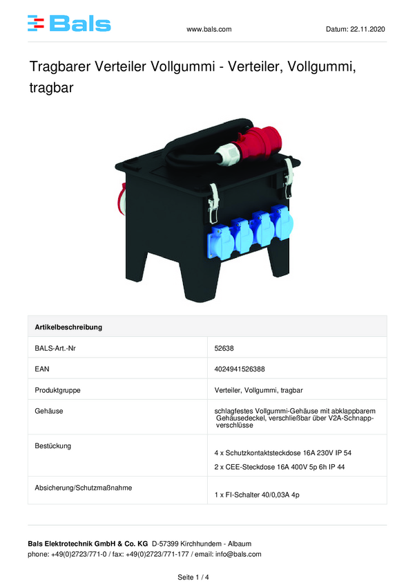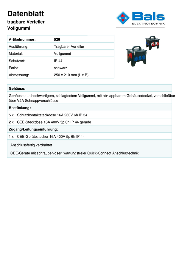 Rozdzielacz prądowy CEE Bals Elektrotechnik 526