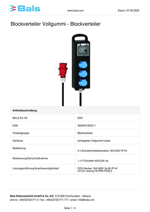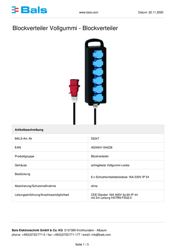 Rozdzielacz prądowy CEE Bals Elektrotechnik 53290
