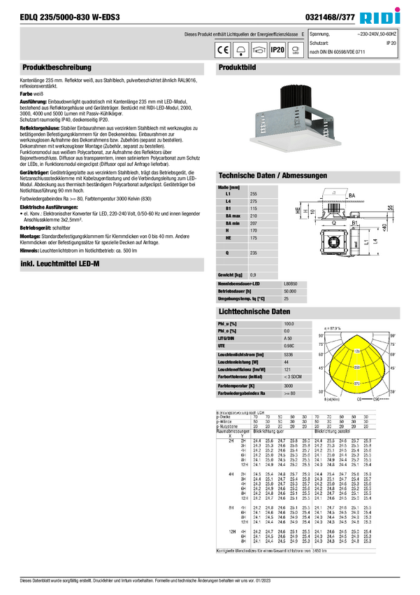 Oświetlenie wewnętrzne LED RIDI 0331467//377 0331467//377 44 W 5340 lm