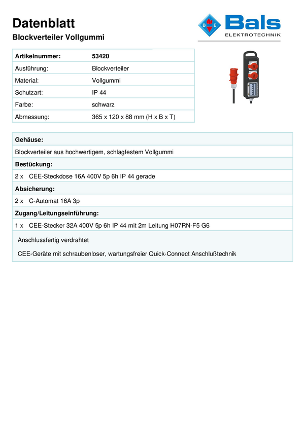 Rozdzielacz prądowy CEE Bals Elektrotechnik 53420