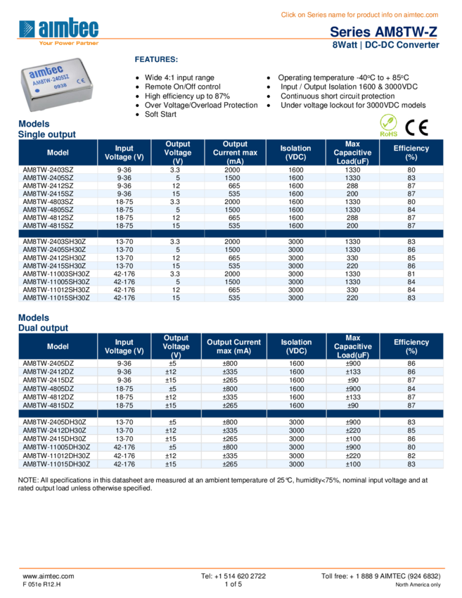 Module DC-DC 1-OUT 15V 0.535A 8W 7-Pin DIP Tube