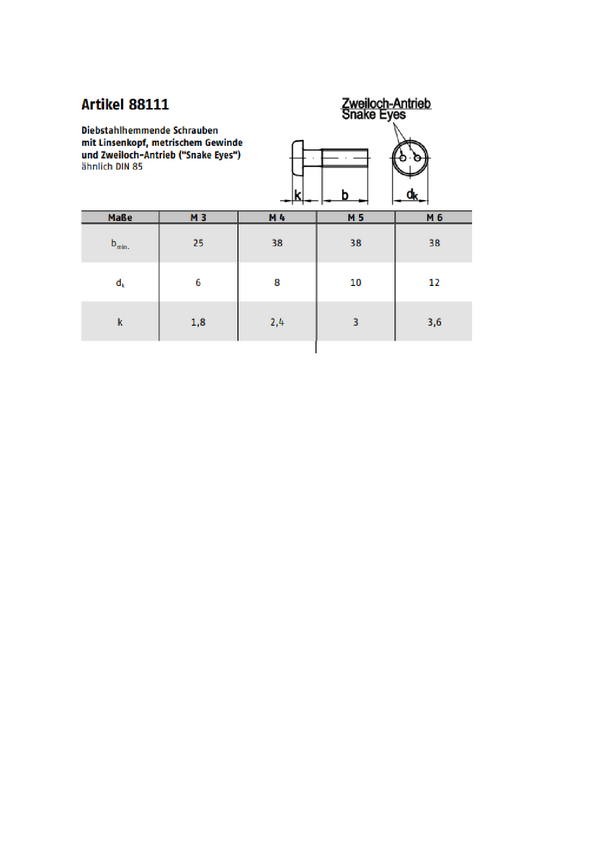 Śruby zabezpieczające TOOLCRAFT TO-5379939 M3 100 szt.