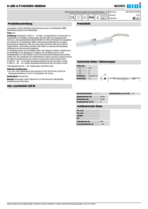 Ciąg świetlny RIDI 537975 537975, 1 szt.