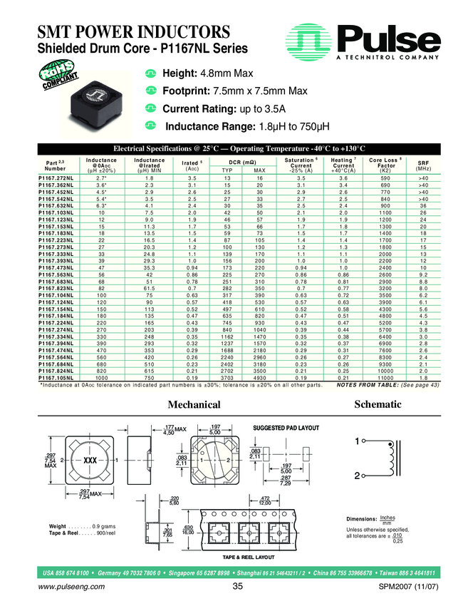 Ind Power Shielded Wirewound 2.7uH 30% 100KHz 3.5A T/R