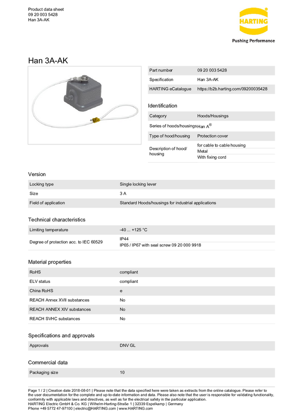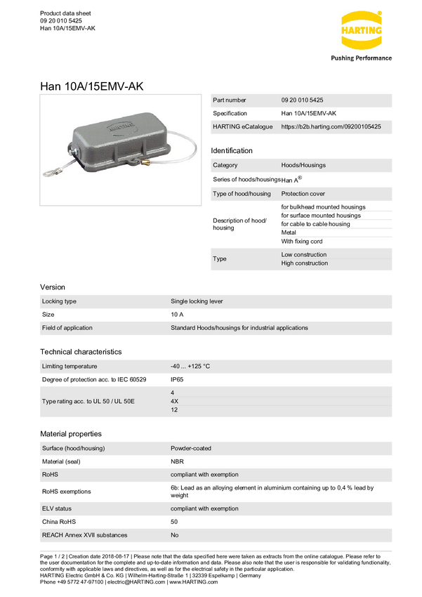 Złącze przemysłowe 09 20 010 5425 Harting Zawartość: 1 szt.