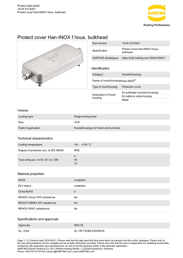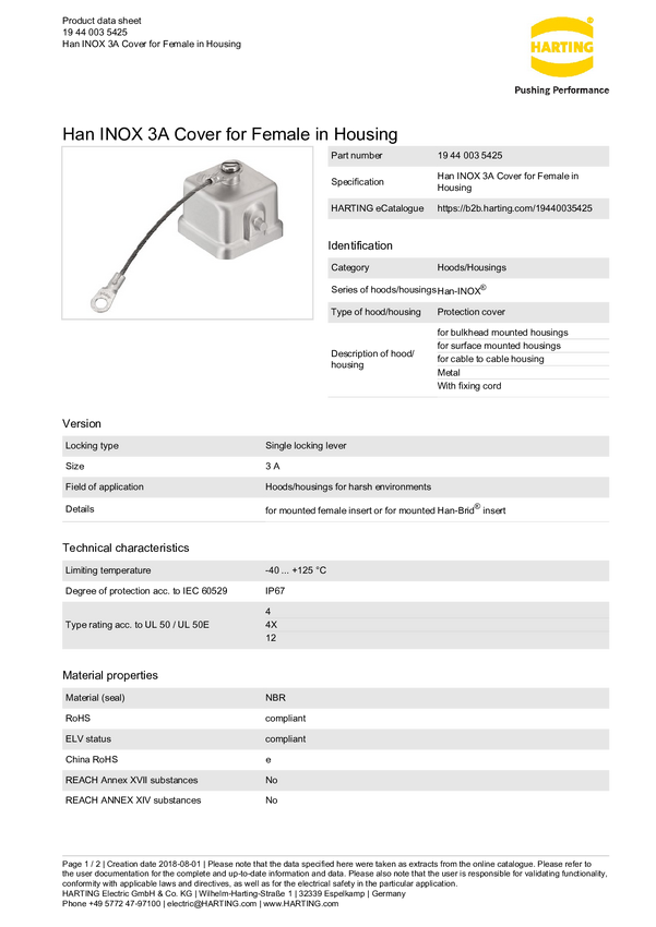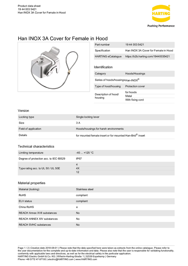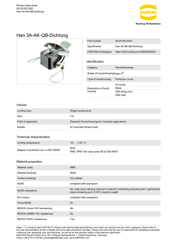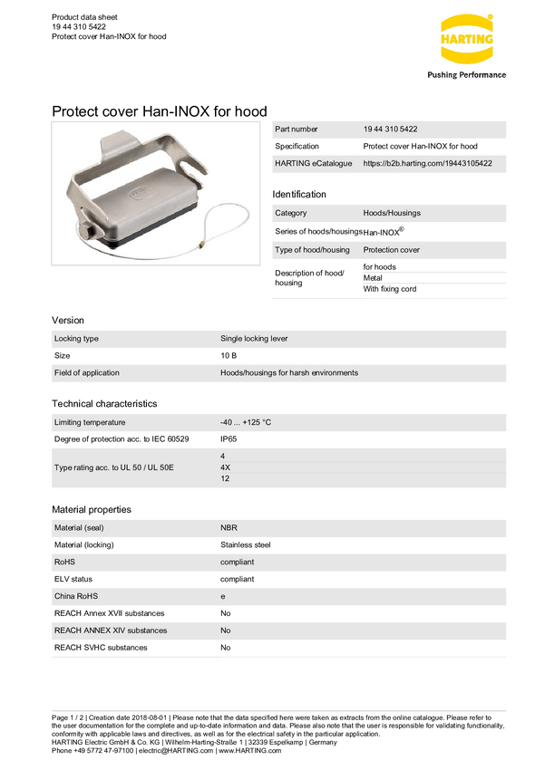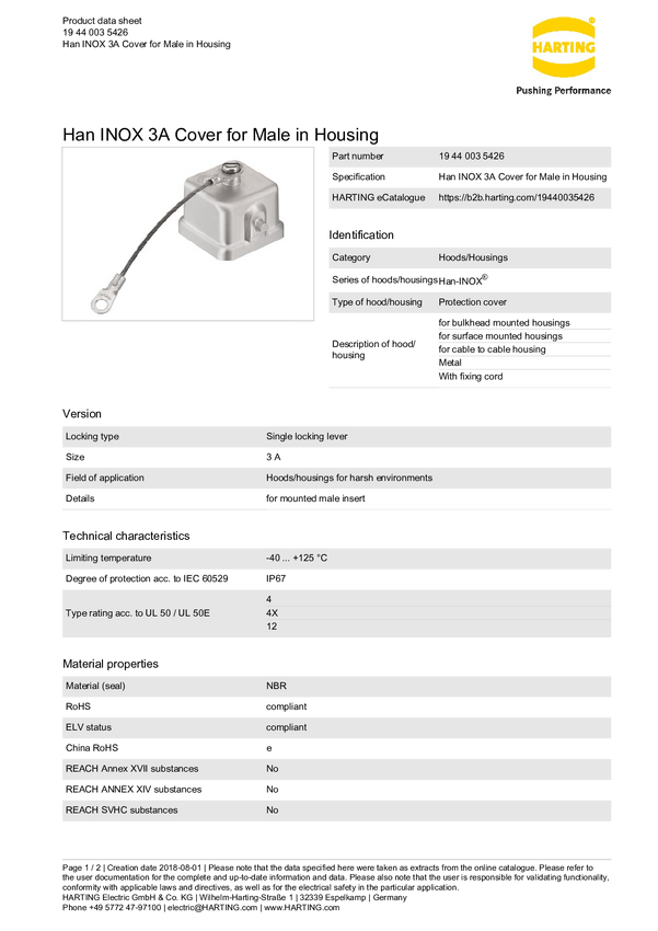 Zatyczka Harting 19 44 310 5421, 1 szt.