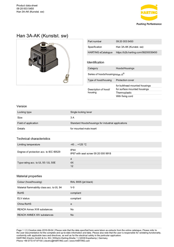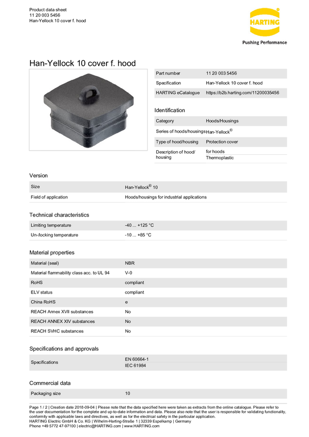 Złącze przemysłowe 11 20 003 5456 Harting Zawartość: 1 szt.