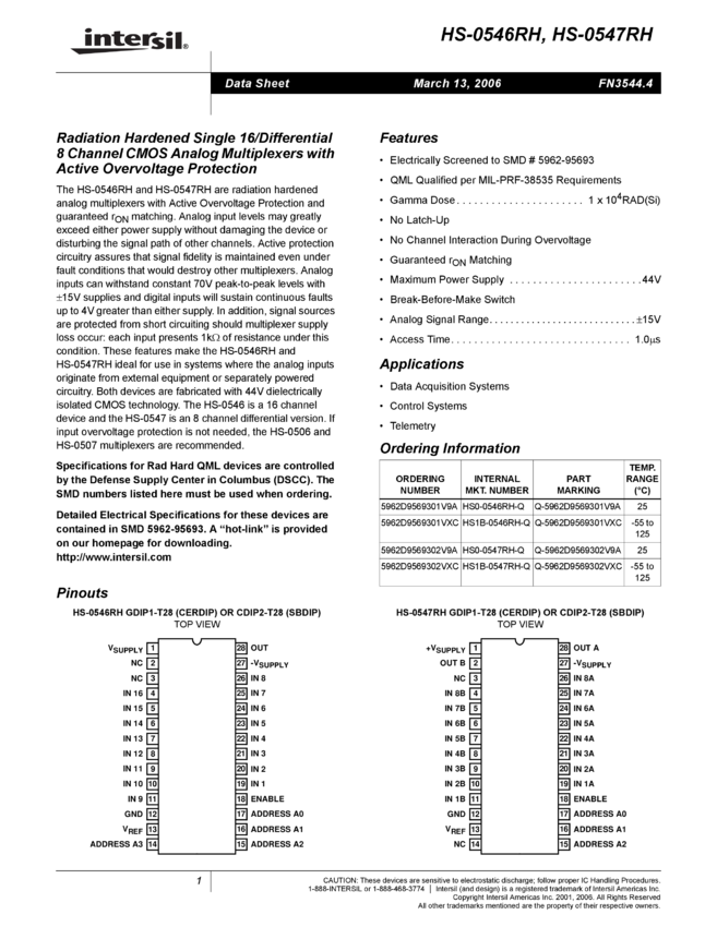 Single 16/Differential 8-Channel CMOS Analog Multiplexers with Active Overvoltage Protection