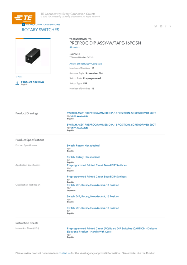 Switch DIP 4PDT 16 Flush Screwdriver 0.1A 28VDC PC Pins 2.54mm Thru-Hole