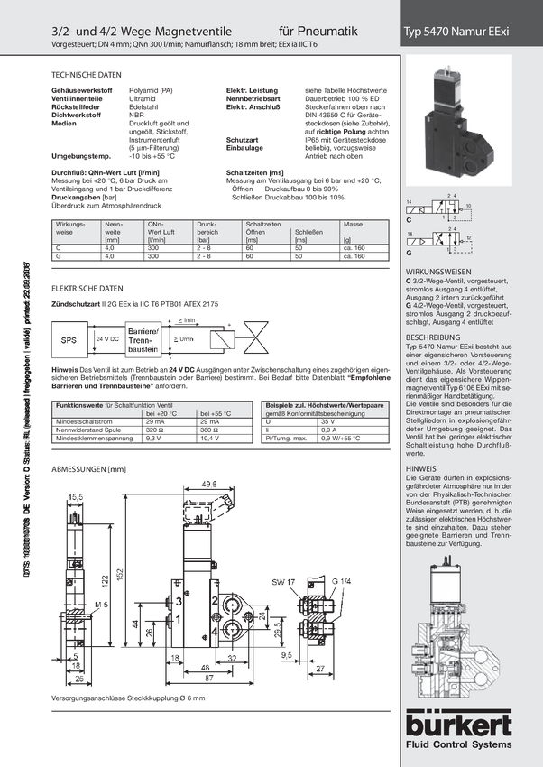 Bürkert Zawór pneumatyczny 5470 139400 8 bar (max) 1 szt.