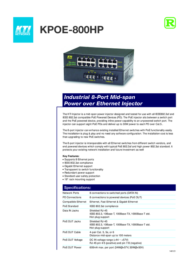 KTI KPOE-800HP Injektor PoE