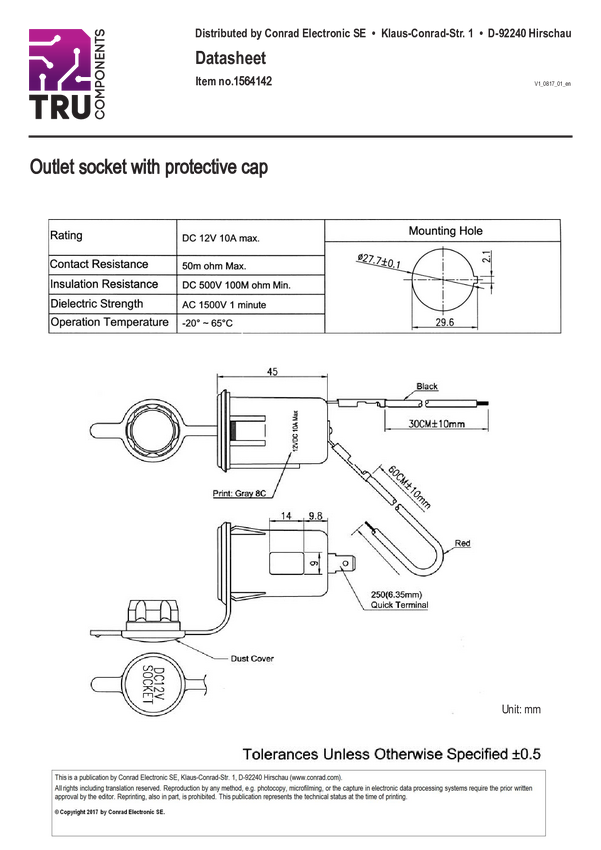 TRU COMPONENTS Złącze samochodowe żeńskie z nasadką ochronną Obciążalność prądu maks.=20 A