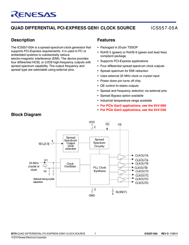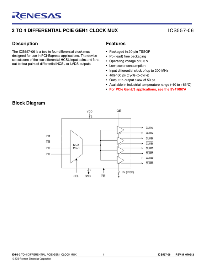 2 to 4 Differential PCIe GEN1 Clock MUX