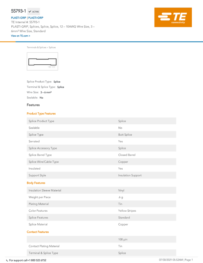 TE Connectivity TE AMP SOLISTRAND Terminals & Splices 55782-1, 1x -0205000681807