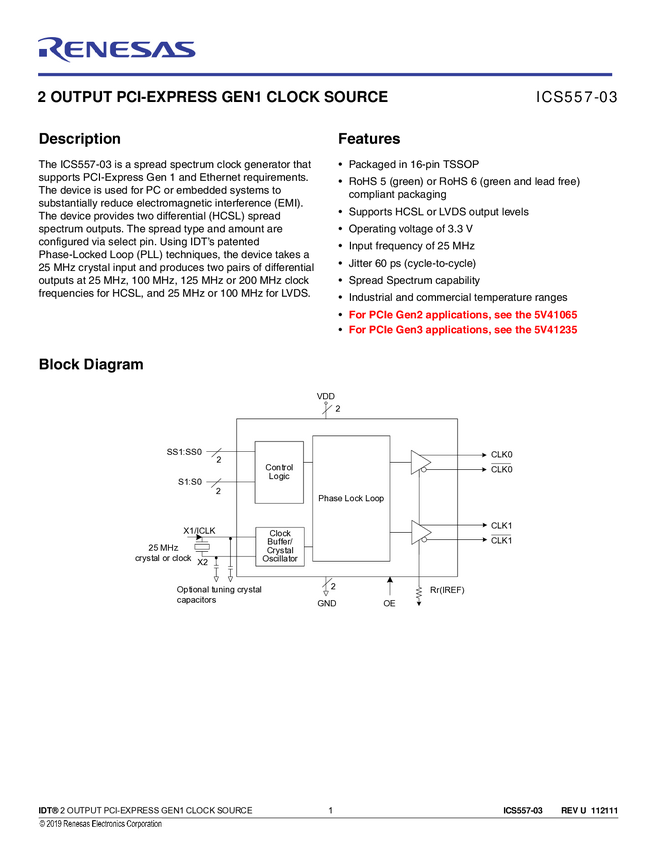 2 to 4 Differential PCIe GEN1 Clock MUX