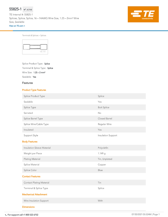 TE Connectivity TE AMP Other Insulated Terminals and Splices 55825-1, 1 szt.