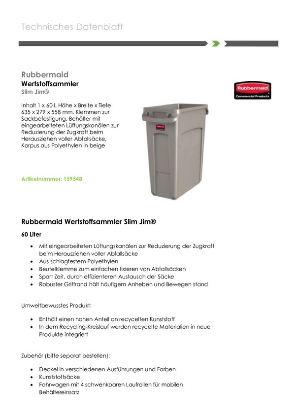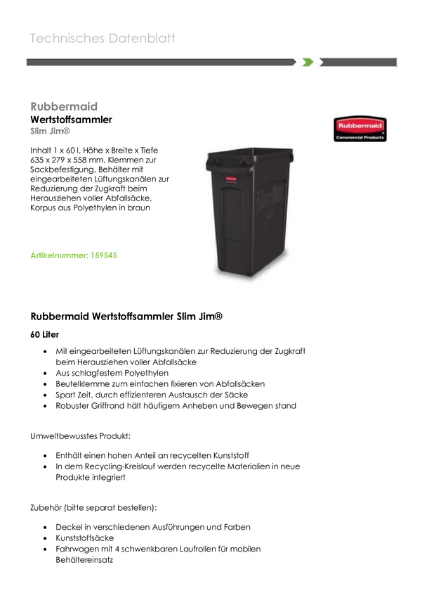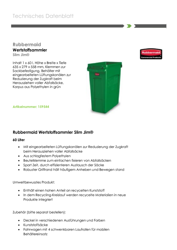 Rubbermaid 0086876227857 Pojemnik do recyklingu 60 l (S x W x G) 279 x 635 x 558 mm zielony N/A 1 szt.