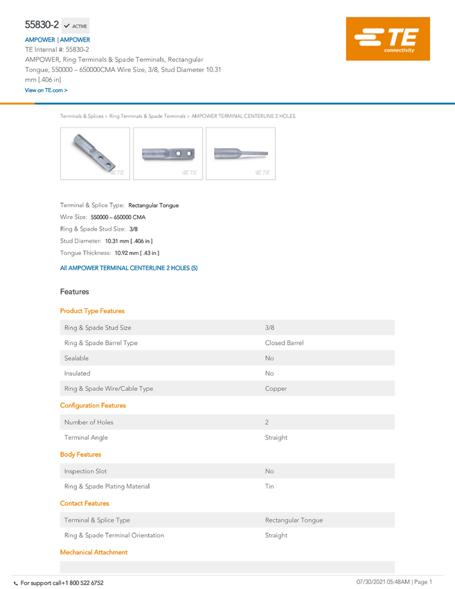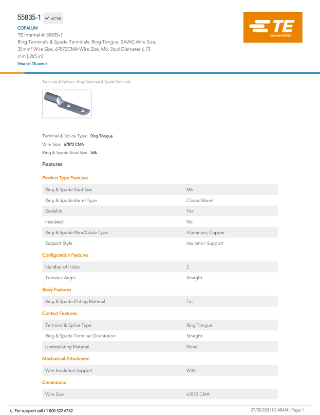 TE Connectivity TE AMP Aluminum Program 55835-1, 1 szt.