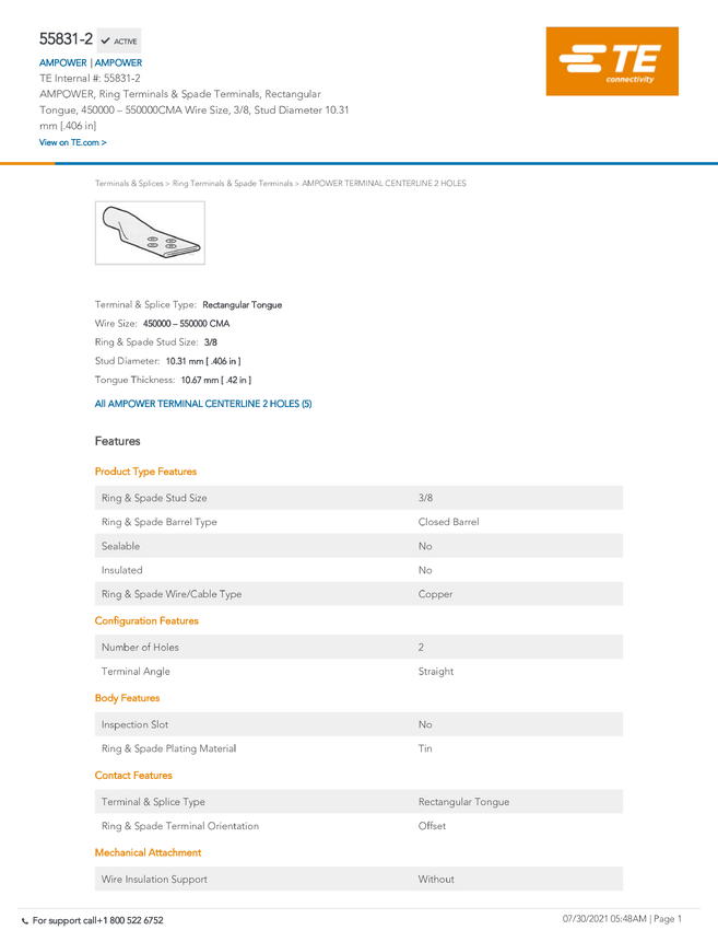 TE Connectivity TE AMP AMPOWER 55831-2, 1 szt.