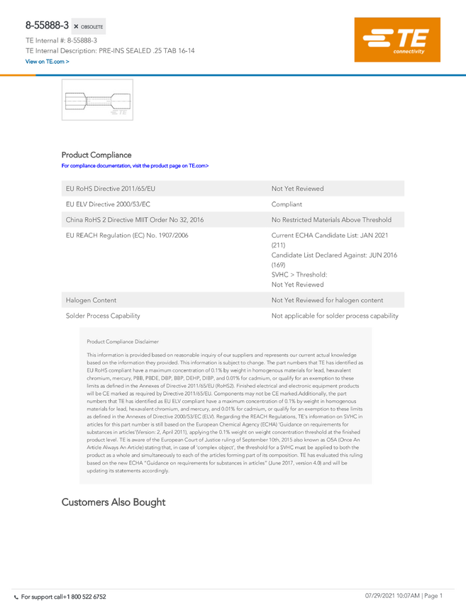 TE Connectivity 8-55888-3 TE AMP Other Insulated Terminals and Splices, 1 szt.