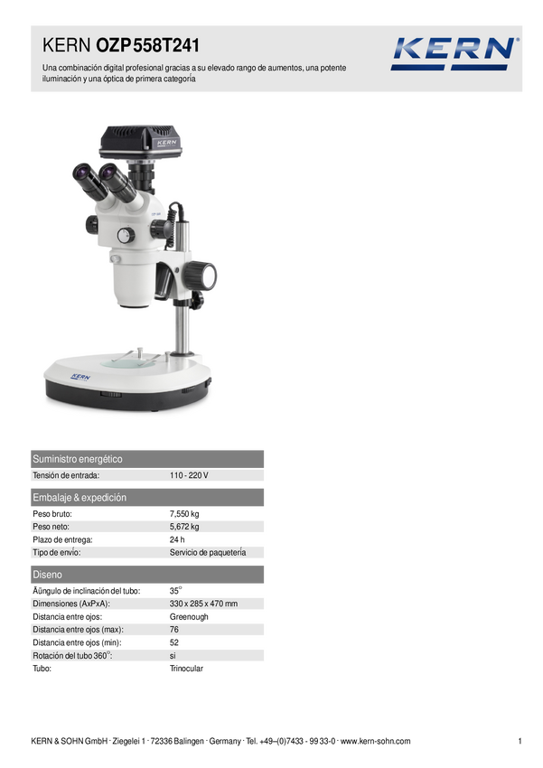 Kern OZP 558T241 OZP 558T241 Mikroskop stereoskopowy trzyokularowy 5.50 x światło odbite