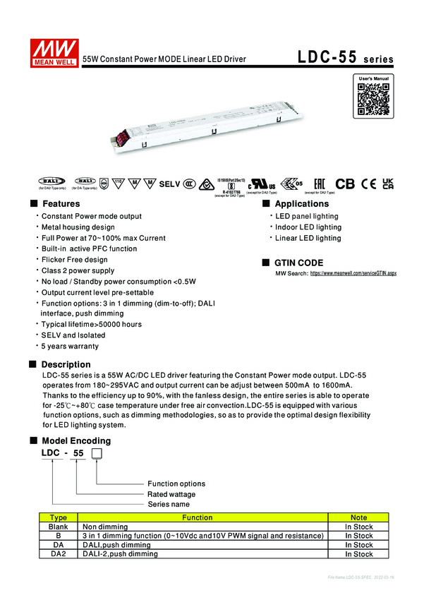 MEAN WELL LDC-55DA2 Sterownik LED 55 W 27 - 56 V 1 szt.