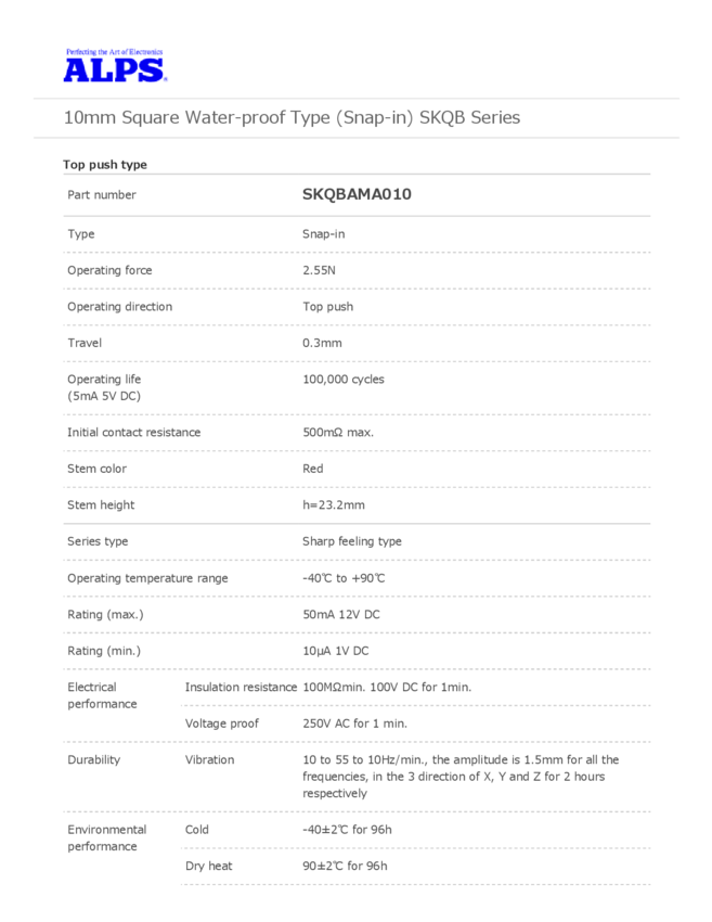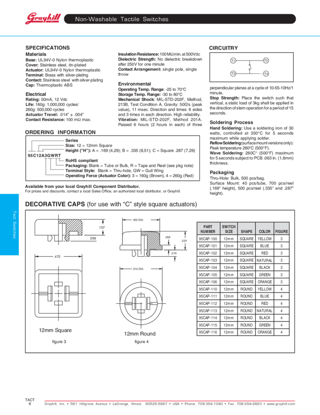 Switch Tactile N.O. SPST Square Button Gull Wing 0.05A 12VDC 2.55N SMD T/R