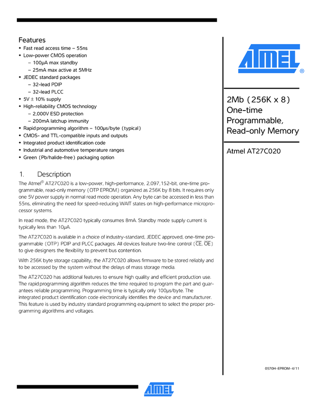 CMOS EPROM 128Kx16 55ns DIP40 =AT27C2048-55PC Wersja OTP AM27c2048-120dc ewentualnie monżna użyć 27c042