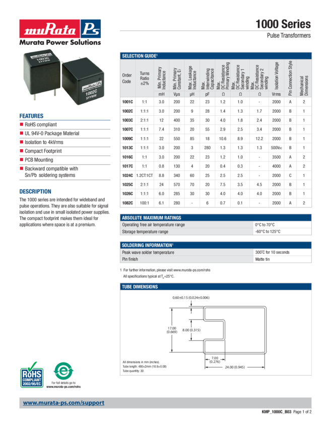 Pulse Transformer 1:1:1 2000Vrms 2.9Ohm Prim. DCR 2.5Ohm/3.4Ohm Sec. DCR 55pF 310Vus Through Hole
