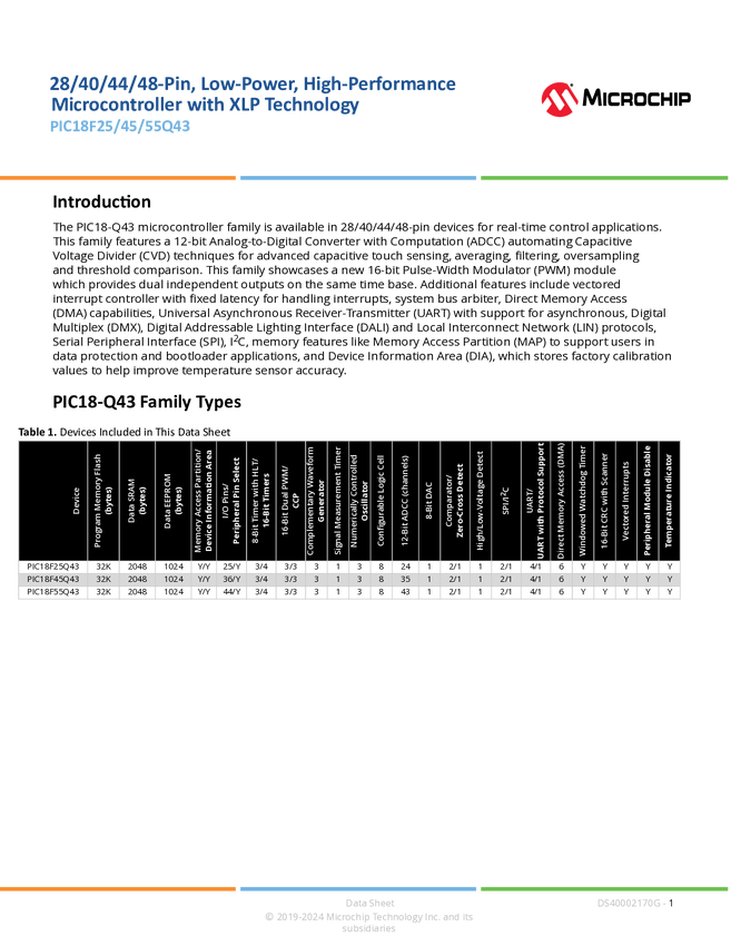 PIC18F25/45/55Q43 28/40/44/48-Pin, Low-Power, High-Performance Microcontroller with XLP Technology Data Sheet